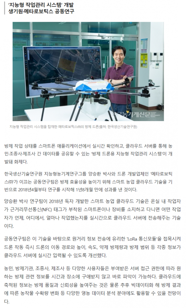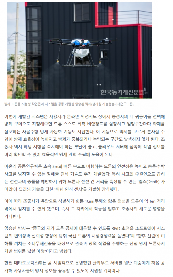 [뉴스] 농업용 방제드론, 더 스마트해지다