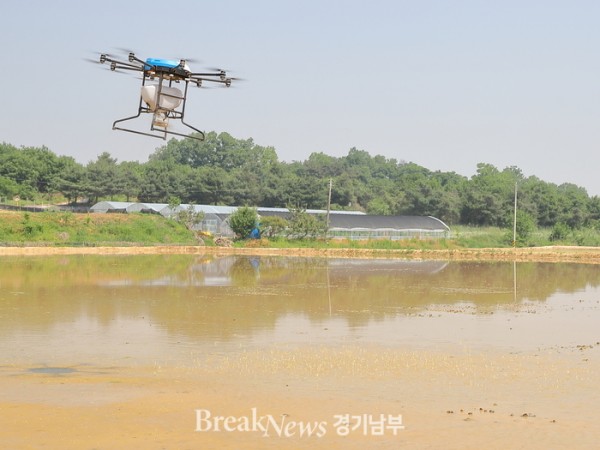 이천시가 드론을 활용한 철분코팅 볍씨 파종 시연회를 가졌다.