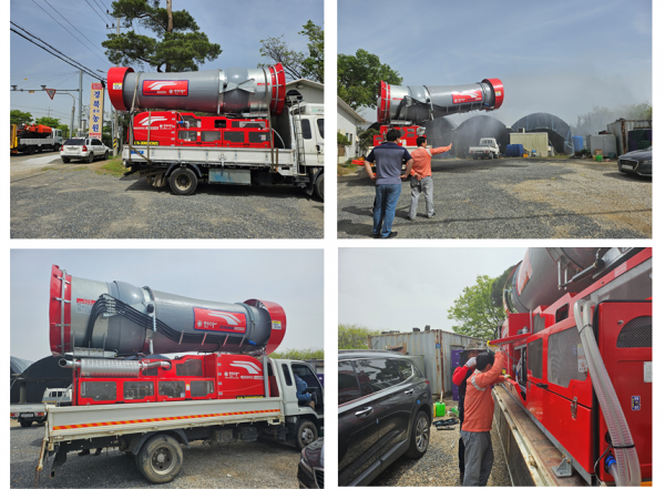 친환경 광역방제기를 경산 묘목 단지에 납품 후 살포 및 운용교육까지 완료하였습니다.