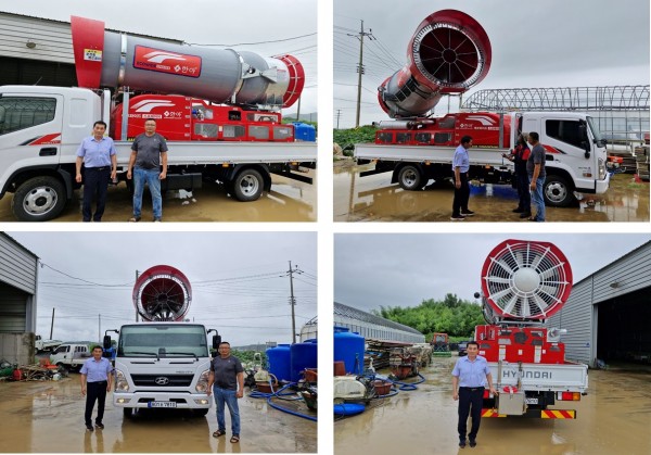 수도작 병해충 공동방제를 위해 구입한 광역방제기를 3.5톤 차량에 탑재하여 납품 및