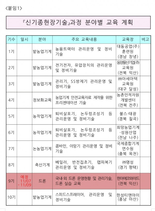 매년 농촌진흥청에서는, 전국 지자체 농업기술센터 실무자를 대상으로 제조업체에서 직접 신기종 현장교육을 실시하는가운데,농업용드론에 대해서는 "반디드론"이 선정되어 메타~와 한아에코~에서는 관련교육을 실시할 예정입니다.