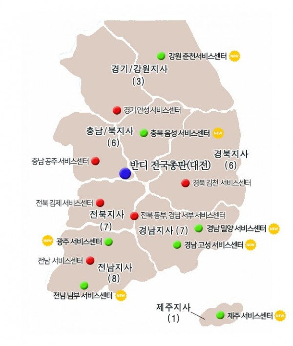 반디드론 전국 A/S센터 및 도단위 반디지사(지역 반디대리점) 현황
